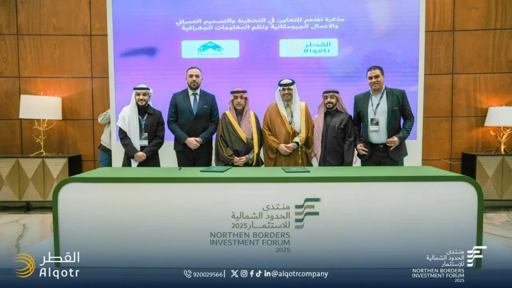 في ختام المشاركة الناجحة في المنتدي المقام بمدينة عرعر وقعت شركة القطر مذكرة تفاهم مع أمانة منطقة الحدود الشمالية والتي تهدف إلي التعاون المشترك عدة مجالات تشمل التخطيط والتصميم العمراني، والأعمال الجيومكانية، ونظم المعلومات الجغرافية (GIS)