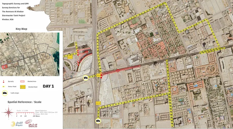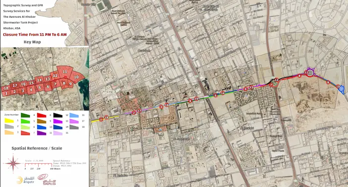 أعمال المسح الطبوغرافي ومسح مرافق البنية التحتية لطريق الأمير سلطان – الظهران